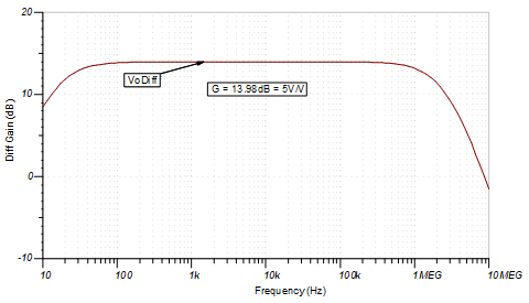 請(qǐng)注意看下圖,根據(jù)此設(shè)計(jì)的要求,–3-dB 截止頻率下限約為 16Hz,而截止頻率上限在 1MHz 以上。