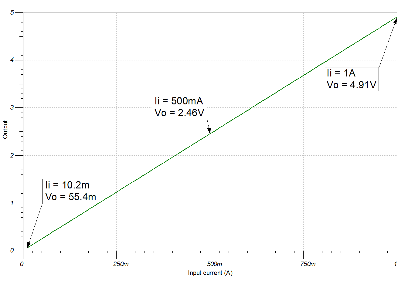 - 計(jì)算達(dá)到輸出擺幅至軌限制前的最小輸入電流。IiMin 表示可準(zhǔn)確檢測(cè)到的最小輸入電流。